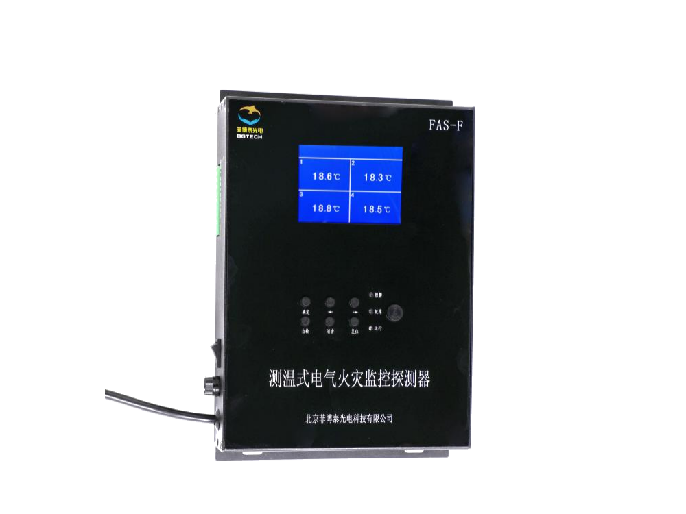 FAS-F測溫式電氣火災(zāi)監(jiān)控探測器是針對高壓開關(guān)柜、刀閘開關(guān)、電纜接頭、變壓器等高壓電力設(shè)備因絕緣老化或接觸不良所引發(fā)故障和火災(zāi)的早期預(yù)測而設(shè)計的。開關(guān)柜、刀閘開關(guān)、電纜接頭、變壓器等設(shè)備屬于強電流、高電壓的電氣設(shè)備,其電氣環(huán)境條件相對惡劣(諸如電磁場輻射、浪涌、電脈沖等電磁干擾大),而光纖具有電絕緣、本征安全、不受電磁干擾等特性,所以傳感器的探頭可以直接以接觸的方式安裝在被測點上,“零距離”地監(jiān)測開關(guān)觸頭、電纜接頭的溫度異常來預(yù)測可能發(fā)生的故障,防止電氣火災(zāi)的發(fā)生。